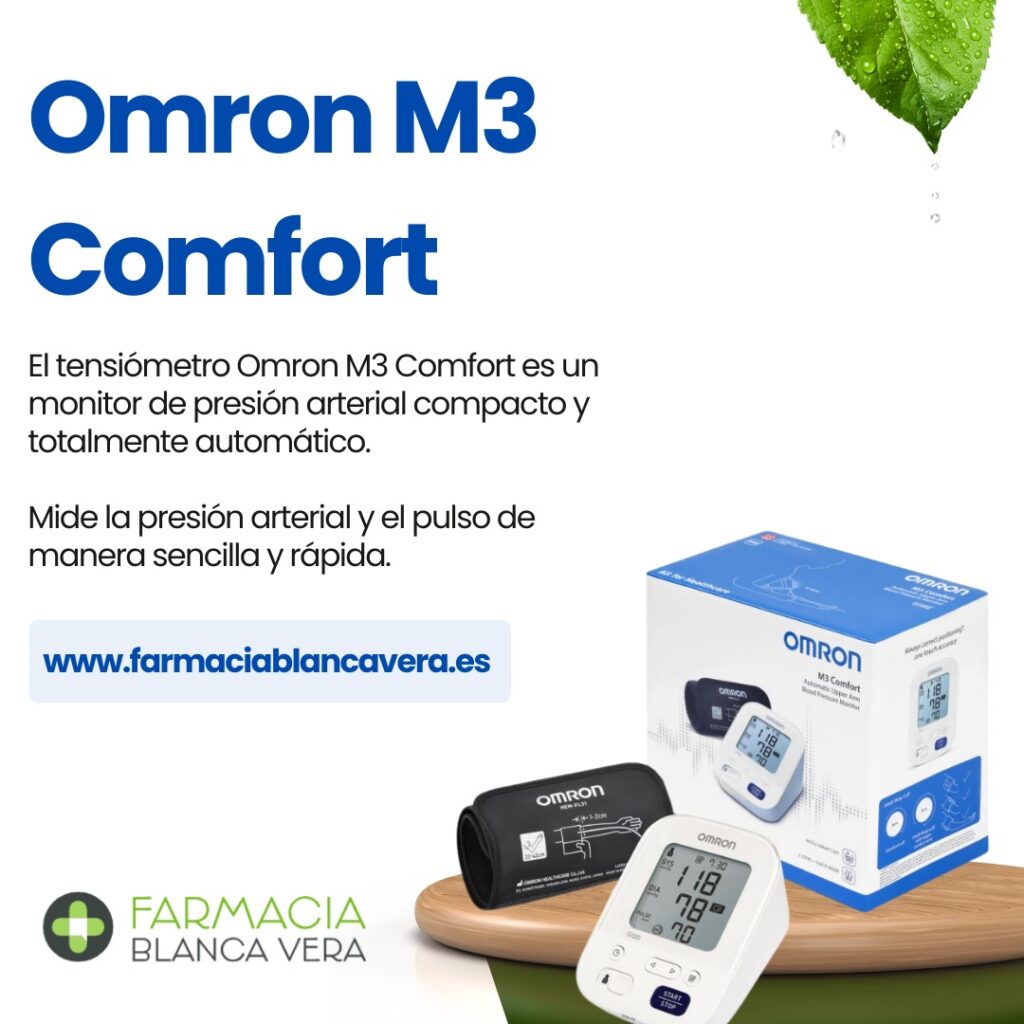El tensiómetro Omron M3 Comfort es un monitor de presión arterial compacto y totalmente automático con doble valoración clínica, europea y americana  y 3 años de garantía. Mide la presión arterial y el pulso de manera sencilla y rápida, con indicadores de color que muestran si los valores se encuentran dentro o fuera de los rangos normales.